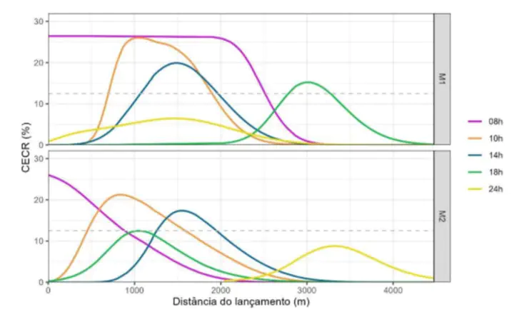 O presente estudo teve como objetivo a realização da modelagem de dispersão de efluente industrial para determinação da zona de mistura em um rio hipotético seguindo as recomendações do Manual de Controle Ecotoxicológico de Efluentes Líquidos no Estado de São Paulo. Para o desenvolvimento do modelo hidrodinâmico, foram considerados os valores de ecotoxicidade (CENO) e sulfato. Os resultados do modelo de dispersão de efluentes foram avaliados de acordo com a Resolução CONAMA nº 357/2005 e com a Resolução CONAMA nº 430/2011. Visando avaliar a sensibilidade das concentrações de sulfato e ecotoxicidade em relação a alterações nas condições de maré, foram desenvolvidos oito cenários com quatro diferentes concentrações do efluente em duas diferentes condições de maré (M1 e M2). Os resultados indicaram facilidade no atingimento dos limites da Classe 2, enquanto para atender aos critérios de ecotoxicidade foram necessárias no mínimo 18 horas para a dispersão do efluente. O comportamento da concentração ao longo do rio nos diferentes horários refletiu a influência da condição de maré, que foi mais favorável para a dispersão do efluente na condição M1, levando em consideração que a concentração de pico foi menor 24h após o lançamento.